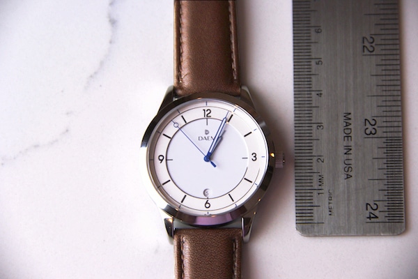 Le diamètre de 40 mm s’adapte à tous les poignets, et l’épaisseur contenue (9 mm) donne une silhouette élégante. Malgré ces finitions de haut niveau, DAEM reste accessible pour la majorité des hommes.